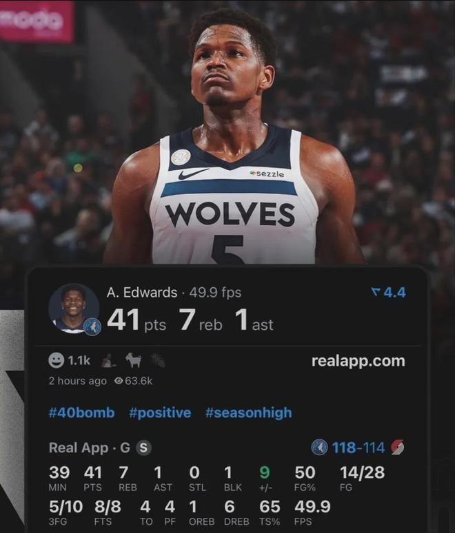 森林狼118-114击败开拓者,爱德华兹越来越有乔丹相,据悉他今年整个夏天都在苦练唯一闲暇时间是开启了中国行,然后成效非常不错,新赛季首战便以50%投篮命中率爆砍41分7板,就是才1次助攻说明其在盘活球队方面仍有提升空间。