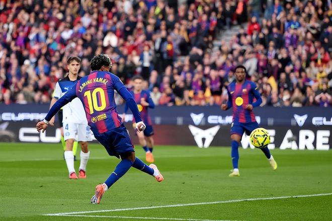 第43分钟,贝尔纳尔断球,亚马尔直传反击,莱万接球再分,亚马尔过掉门将之后射门却打在了边网上,白白浪费了扩大比分的机会。